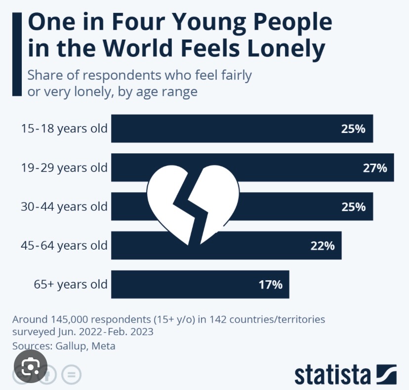 People in the UK are now living in a world where the old ways of making & keeping relationships are more difficult. You can see from this graph that loneliness has hugely increased since 1994.